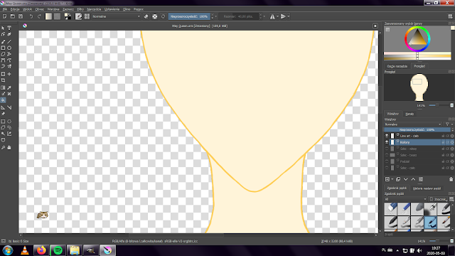 When the sketch was ready I could do the line art. I decided to do the colourful one. However, it always causes problems with choosing right colour. But there is one MyPaint's feature that is extremely helpful with it.